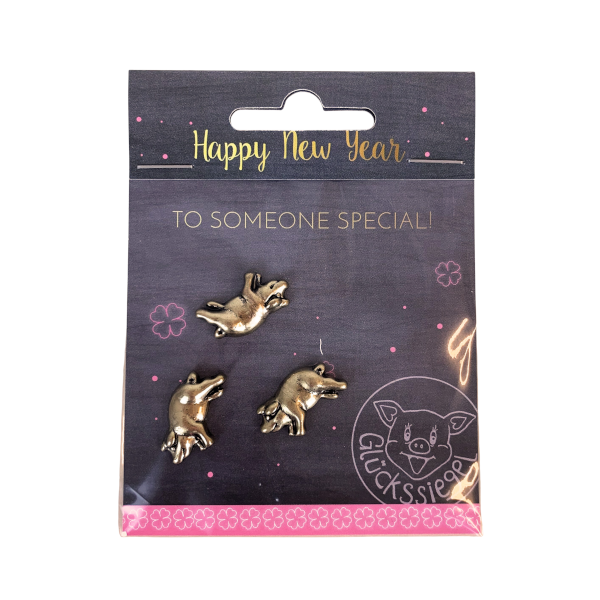 Goldenes Minischweinchen in Glücksverpackung