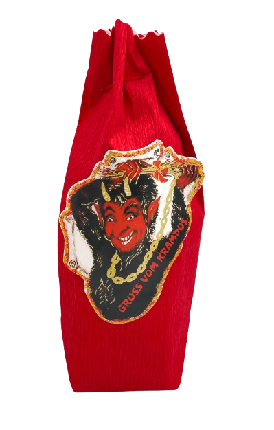 Kreppkrampussackerl mit weißem Motiv 29x8x17 cm