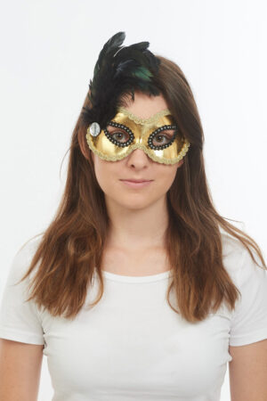 Venezianische Maske gold/silber mit Federn