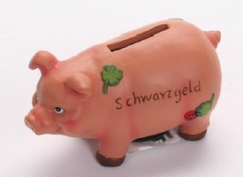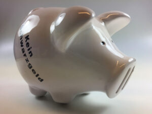 Sparschwein weiß "KEIN SCHWARZGELD", 14,5 cm