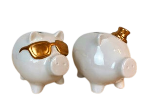 Weiß/Goldenes Sparschwein sort.