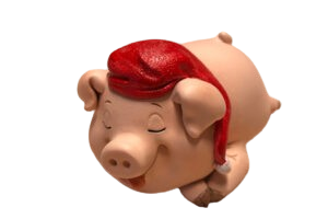 Dickes Schweinchen mit Schlafmütze sort.