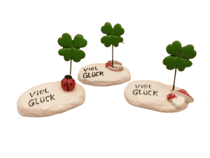 "Viel Glück" Stein mit Kleeschild