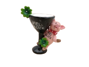 Schwein mit Sektglas gold/silber