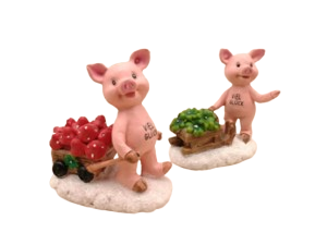 Schwein mit Scheibtruhe/Schlitten
