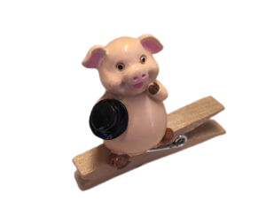 Schweinchen mit Hut auf Kluppe