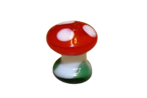 Glasflasche mit Marienkäfer oder Pilz