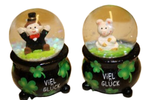 Glückstopf Schneekugel sort.