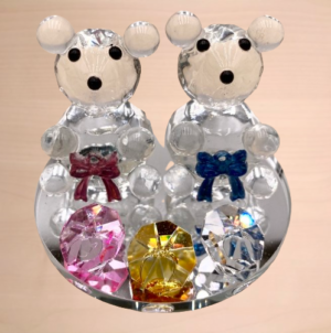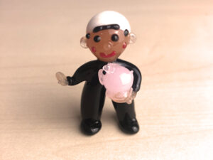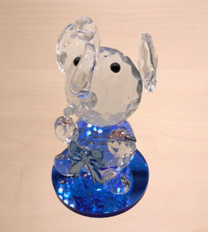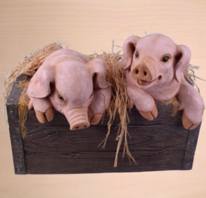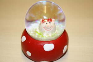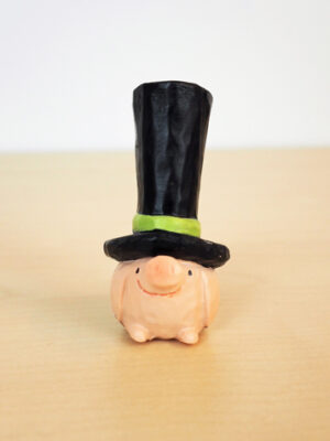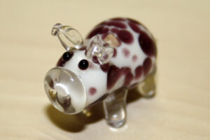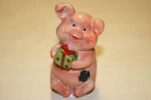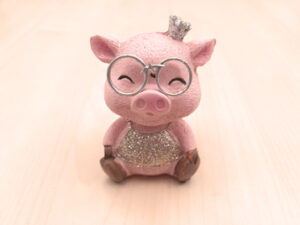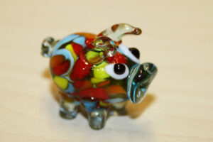 Hellblaues Schweinchen mit bunten Tupfen sort.